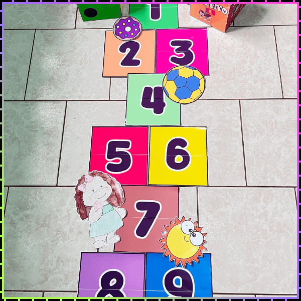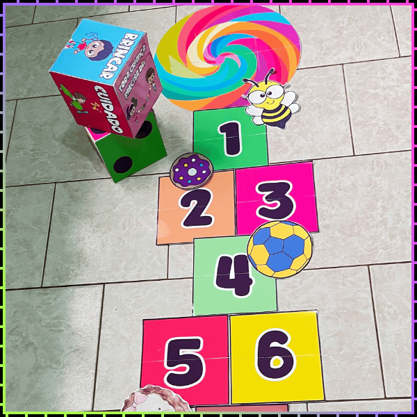 🔢 Dado numérico – para brincar na versão tradicional da amarelinha.
