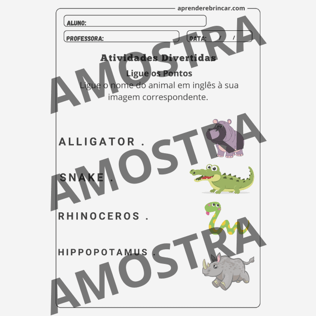Atividades de associação: ligar os nomes dos animais às imagens correspondentes.