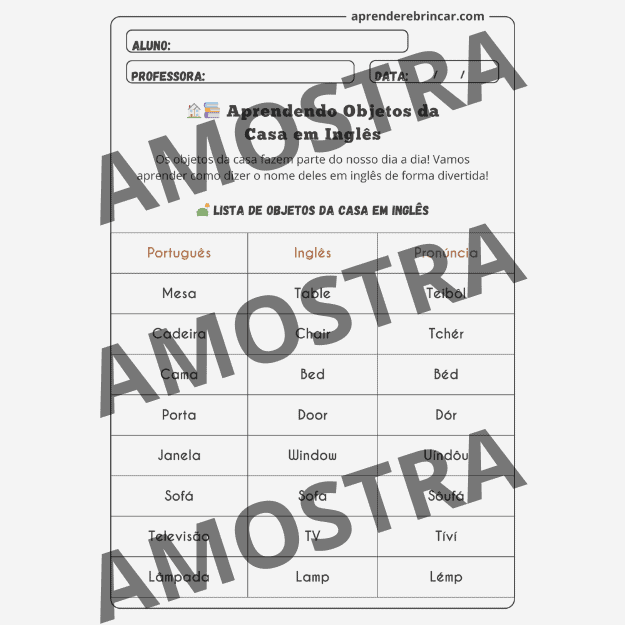 1 avaliação para Aprendendo Inglês – Objetos da Casa.