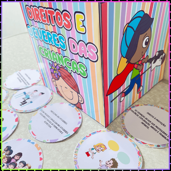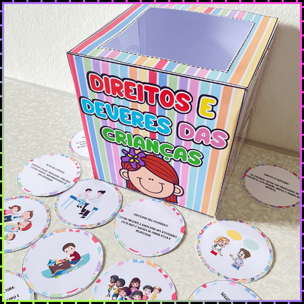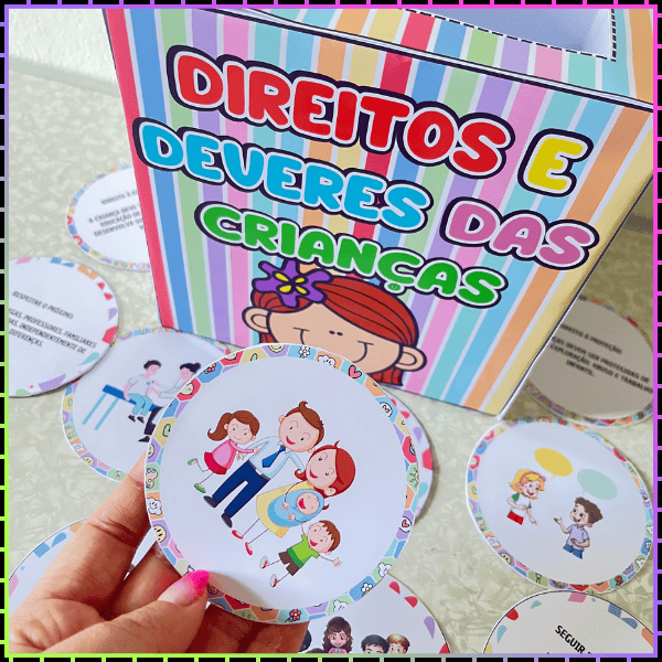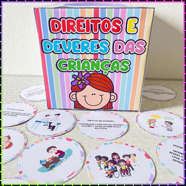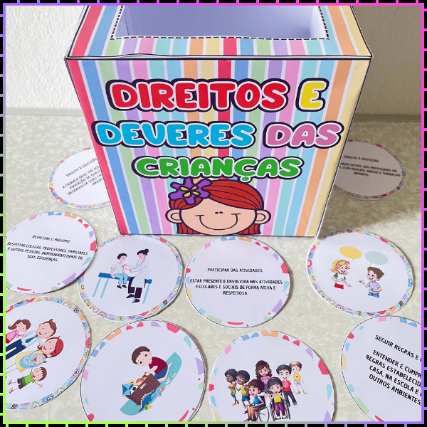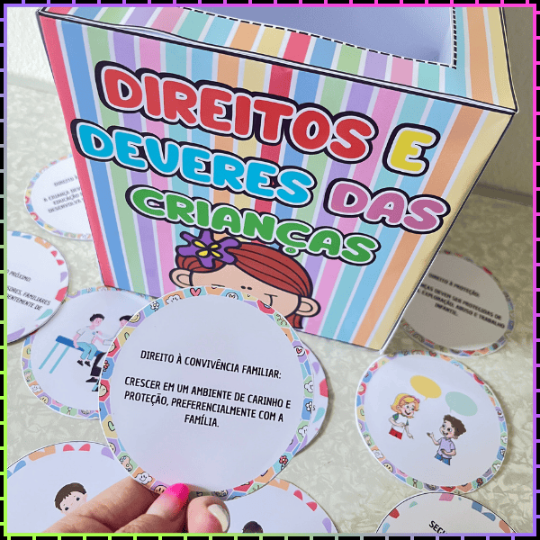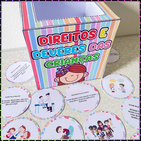 Uma caixa encantadora com cards ilustrativos que apresentam, de forma simples e visual, os principais direitos e deveres das crianças.